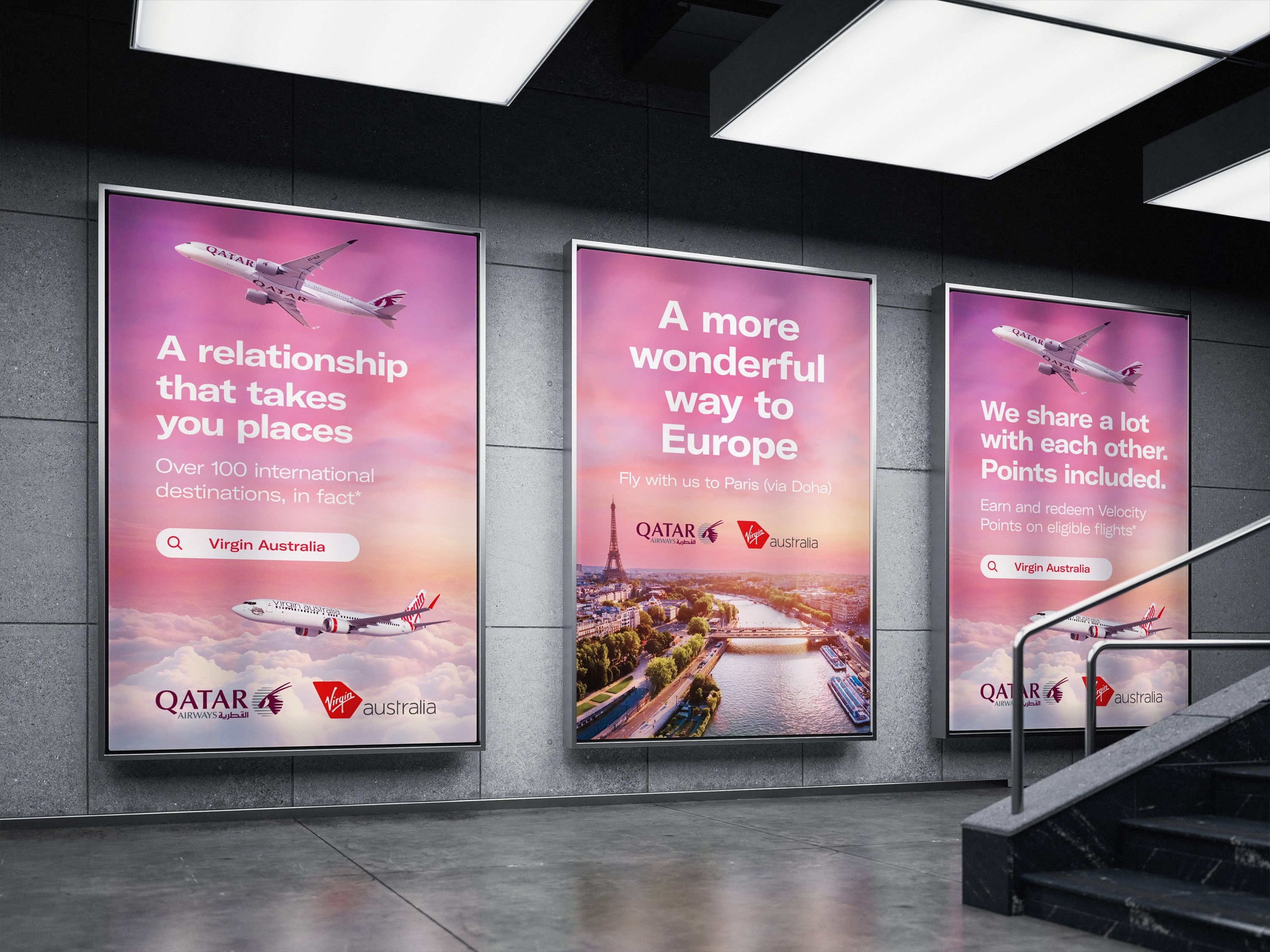 This campaign introduced Virgin Australia's expanded international network through a new global partnership with Qatar Airways. More than a route update, it marked a return to long-haul travel with renewed ambition and a strong signal of the brand’s forward momentum.